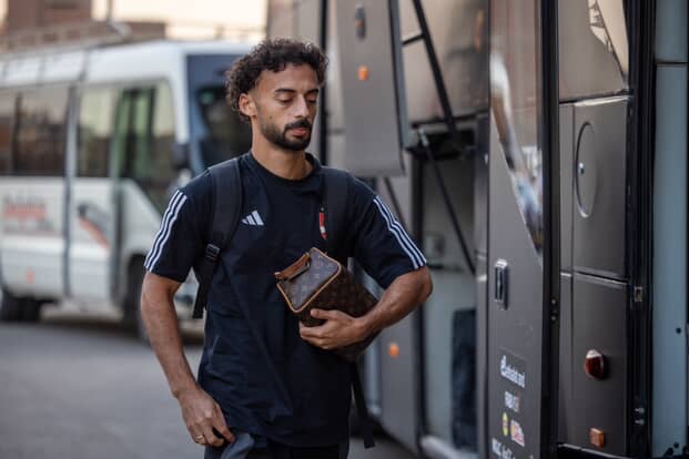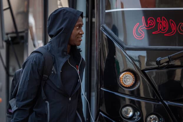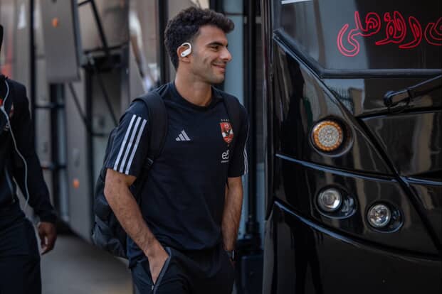 وصلت حافلة الفريق الأول لكرة القدم بالنادي الأهلي إلى استاد المقاولون العرب، استعدادًا لخوض مباراة كهرباء الإسماعيلية التي من المقرر أن تجمع الفريقين مساء اليوم، ضمن منافسات الجولة العاشرة من بطولة الدوري الممتاز.