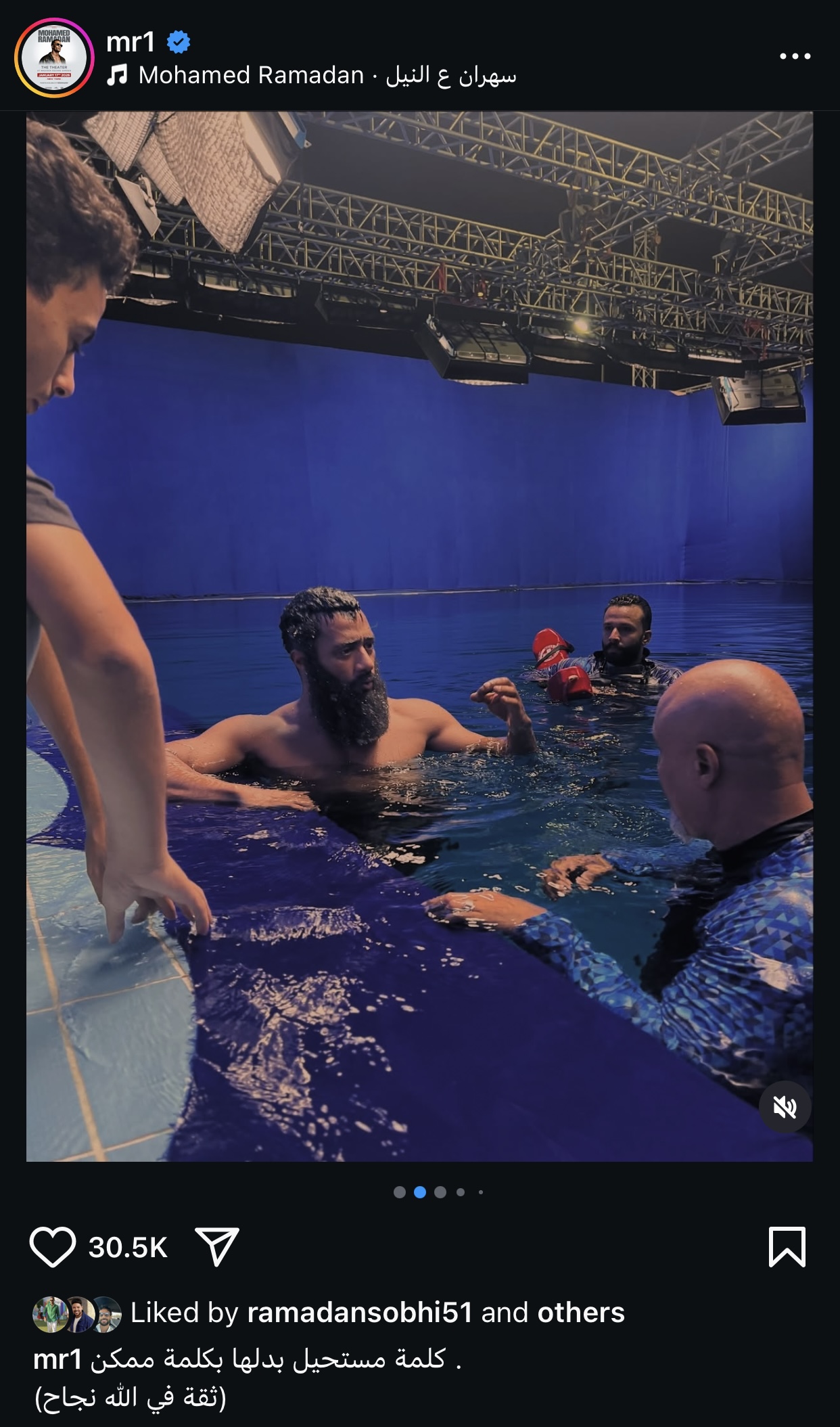 نشر الفنان محمد رمضان، صور على حسابه الشخصي بموقع إنستجرام بكواليس أعماله الأخيرة، وعلق عليها قائلًا: "كلمة مستحيل، بدلها بكلمة ممكن..ثقة في الله نجاح".