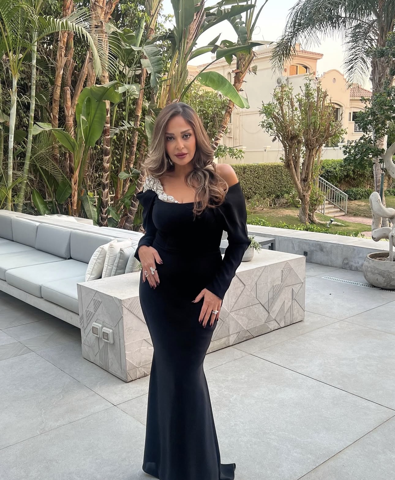 تألقت داليا البحيري في الصور بإطلالة راقية كشفت عن ذوقها الأنيق في أختيار الأزياء، حيث ارتدت فستان طويل ذا أكمام طويلة، واتسم التصميم باللون الأسود الذي كشف عن رشاقتها وقوامها المثالي.