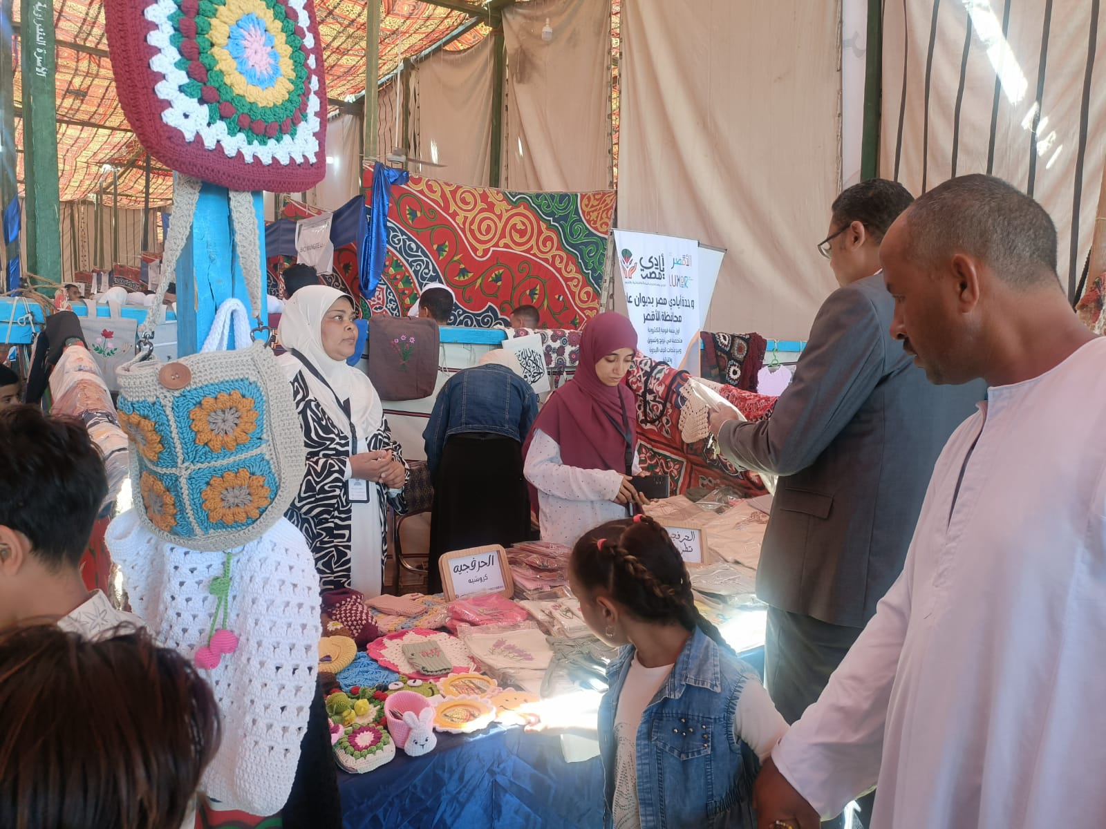 شاركت وحدة "أيادي مصر" بمحافظة الأقصر بمعرض الحرف اليدوية والتراثية المقام على هامش فعاليات المنتدى الاقتصادي الحادي عشر بمركز دندرة الثقافي بالتعاون مع مؤسسة المنارة والضحى.