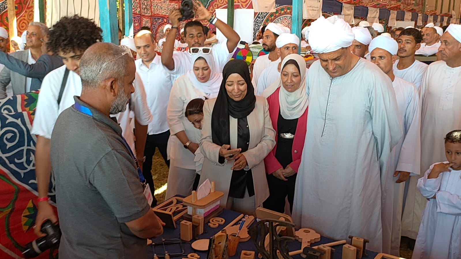 حضر المعرض حياه عبد الرحيم منسق عام وحدة ايادي مصر بمحافظة الأقصر ونهال أبو المجد نائب الوحدة بالتعاون مع فاطمة بغدادي رئيس مجلس الأمناء لمؤسسة المنارة والضحى ومؤسس الحرفجية.