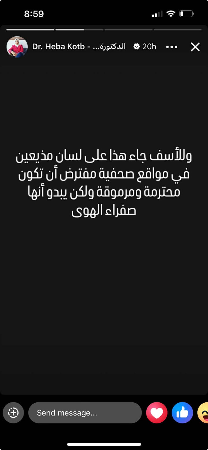 نفت الدكتورة هبة قطب ما تم تداوله على بعض المواقع الإخبارية ومنصات التواصل الاجتماعي بشأن تصريحات نسبت إليها حول حفل زفاف ابنتها دينا، مؤكدة أنها لم تُدلِ بأي تصريحات صحفية أو إعلامية سواء للمواقع أو القنوات أو عبر حساباتها على السوشيال ميديا.