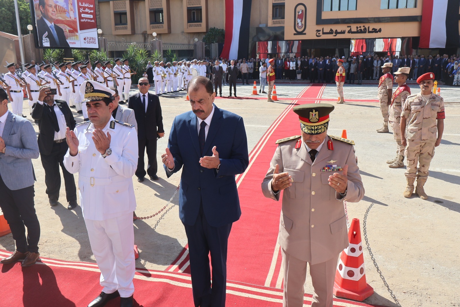 واختتمت المراسم بعزف السلام الجمهوري، ثم قام محافظ سوهاج بتحية الحضور جميعا وتقديم التهنئة لهم بمناسبة ذكرى انتصارات أكتوبر المجيدة.