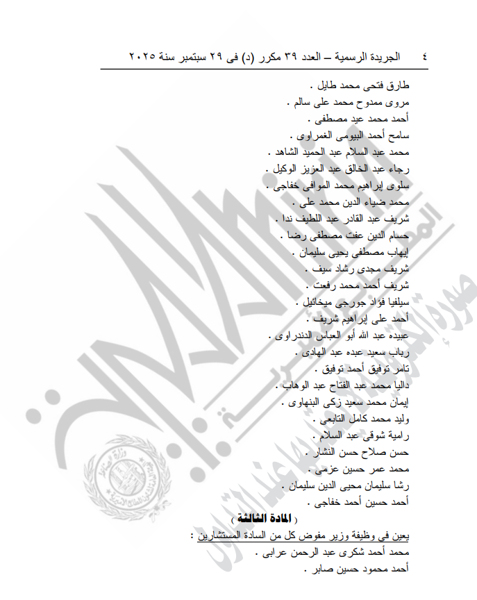 ونُشر القرار في الجريدة الرسمية.