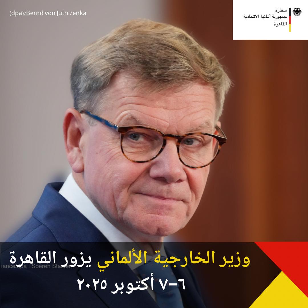 وأشار البيان إلى أن هذه الزيارة تعد الثانية لوزير الخارجية الألماني إلى مصر منذ توليه منصبه في مايو ٢٠٢٥، بما يعكس عمق الحوار الألماني-المصري وأهمية التنسيق المستمر بشأن ملفات المنطقة.