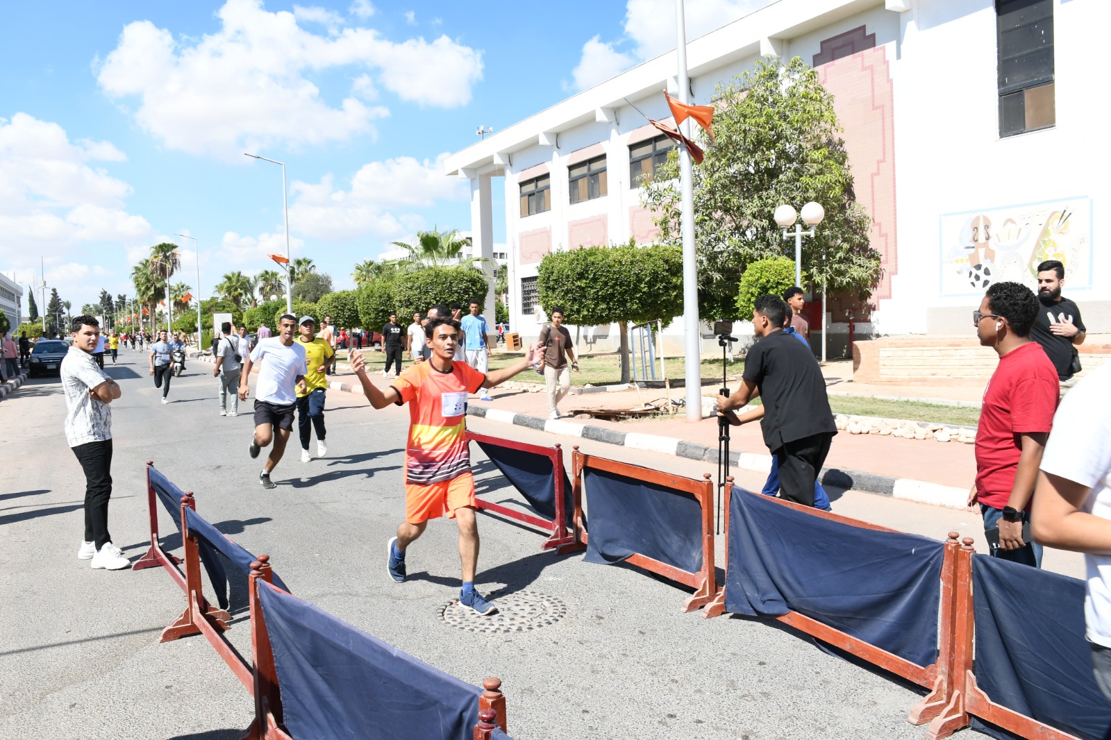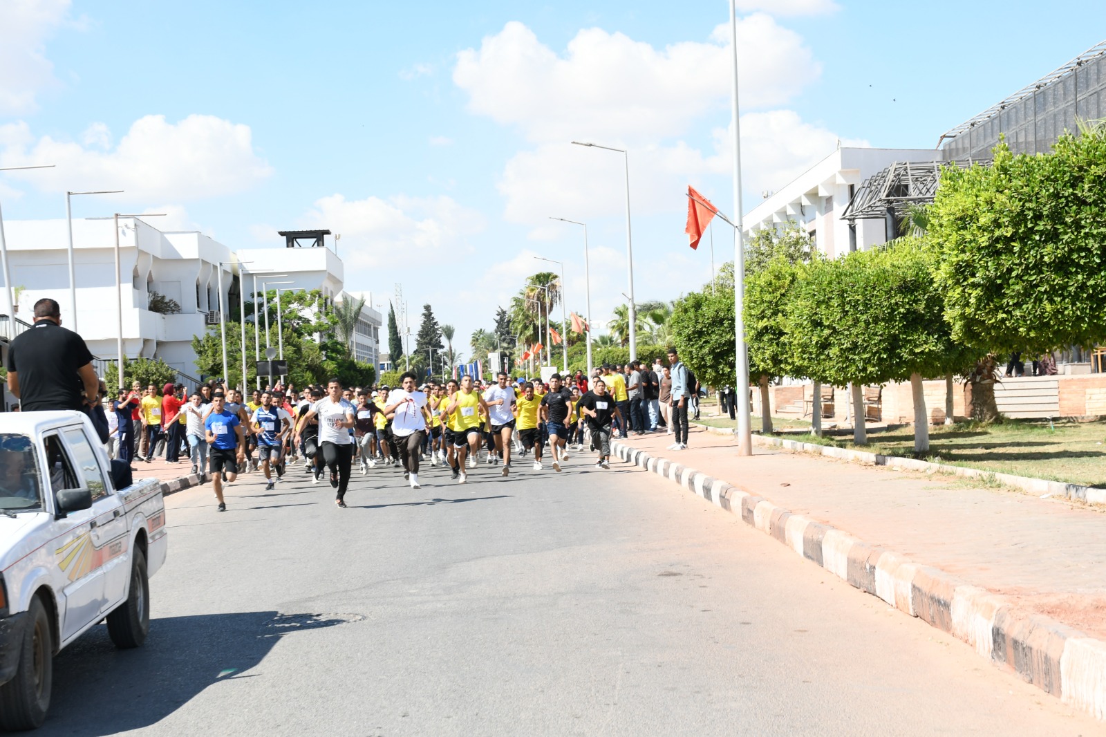 وأُقيم السباق بإشراف عام من الدكتور محمد عبد النعيم نائب رئيس الجامعة لشئون التعليم والطلاب، الذي قام بإطلاق إشارة بدء السباق، مؤكداً أن الأنشطة الرياضية تمثل محوراً أساسياً في بناء الشخصية الجامعية المتكاملة، لما تحققه من توازن بين التحصيل العلمي واللياقة البدنية والروح الجماعية. وأشار إلى أن مهرجان سباق الطريق هذا العام يأتي في إطار احتفالات الجامعة بانتصارات أكتوبر المجيدة، حيث تجسدت خلاله روح التحدي والتعاون بين طلاب الجامعة.