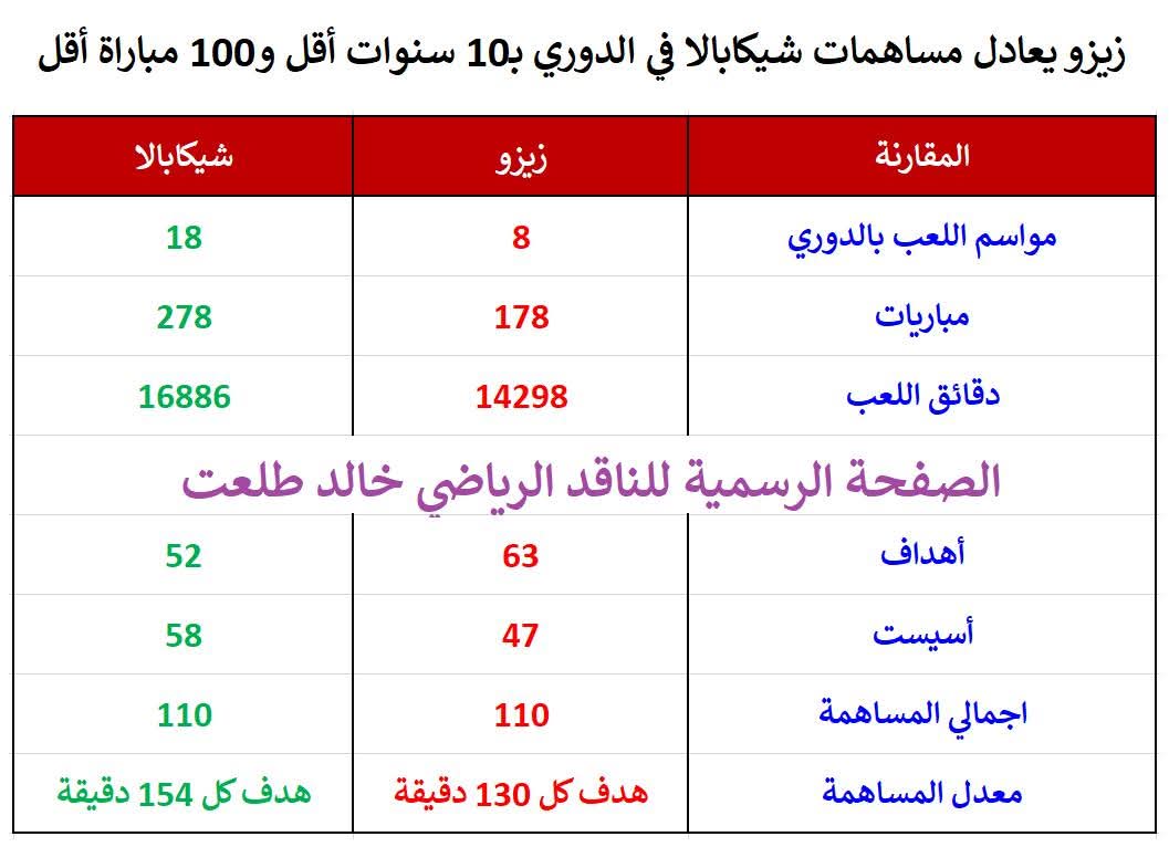 وكتب الدردير عبر فيسبوك:"أحمد سيد زيزو يعادل رقم شيكابالا في المساهمات في أهداف في الدوري رغم أن زيزو لعب 10 سنوات أقل ، ولعب 100 مباراة أقل".