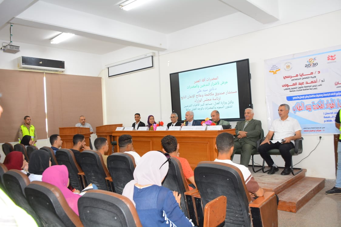 نظّمت إدارة النشاط الاجتماعي والرحلات بالإدارة العامة لرعاية الطلاب بجامعة أسيوط، اليوم الثلاثاء، ندوة توعوية ضمن سلسلة الندوات التي تُعقد بعنوان "مكافحة انتشار المخدرات بين الطلاب"، وذلك في كلية التجارة، بالتعاون مع المجلس الأعلى للجامعات وصندوق مكافحة وعلاج الإدمان والتعاطي، في إطار تنفيذ رؤية مصر 2030.