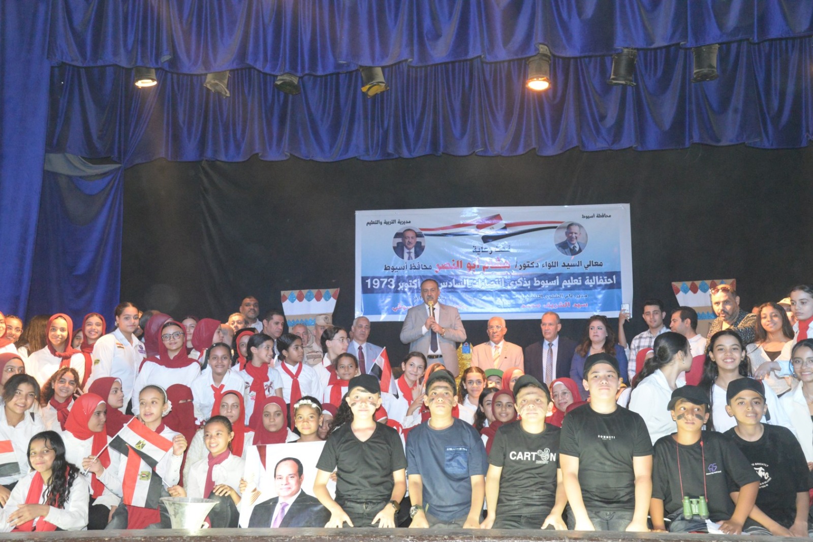 شهد اللواء دكتور هشام أبو النصر محافظ أسيوط، احتفالية مديرية التربية والتعليم بالذكرى الـ52 لانتصارات أكتوبر المجيدة، والتي أقيمت بمدرسة الجامعة الموحدة بحي غرب أسيوط، في أجواء وطنية مفعمة بالفخر والاعتزاز، بحضور قيادات تنفيذية وتعليمية وعسكرية، وعدد من أعضاء مجلسي النواب والشيوخ، وممثلي مجالس الأمناء والمعلمين.
