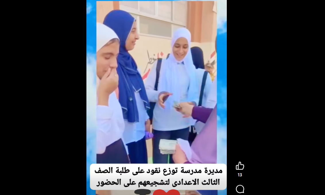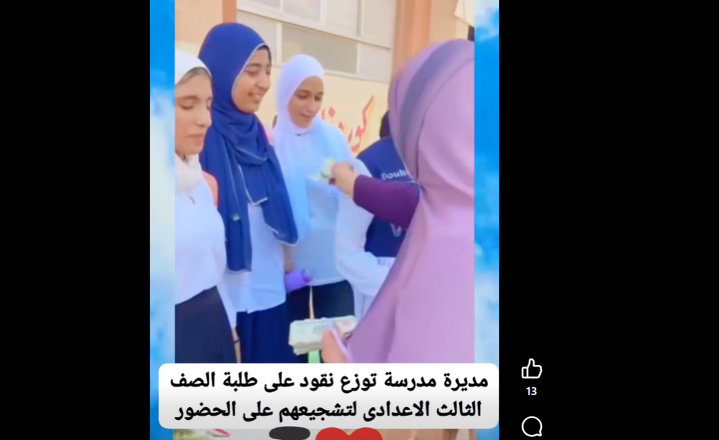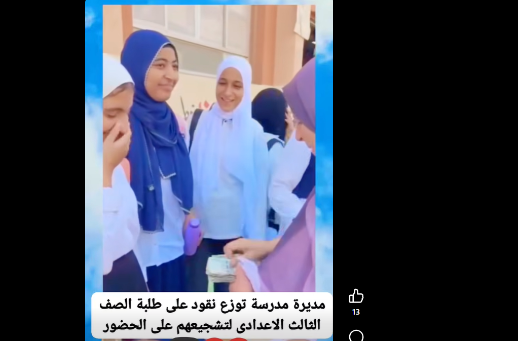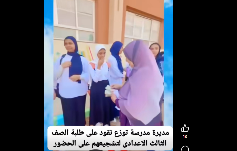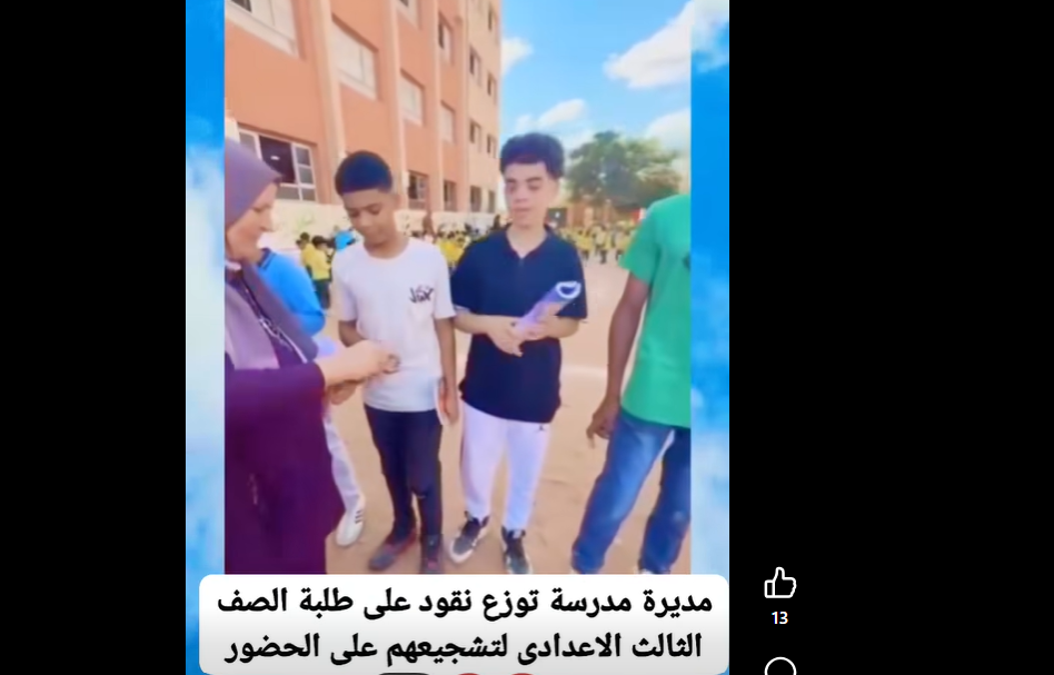 يشهد موقع التواصل الاجتماعي حاليا تداولا لفيديو يزعم قيام مديرة مدرسة بتوزيع النقود على طلاب الصف الثالث الإعدادي لتشجيعهم على الحضور.