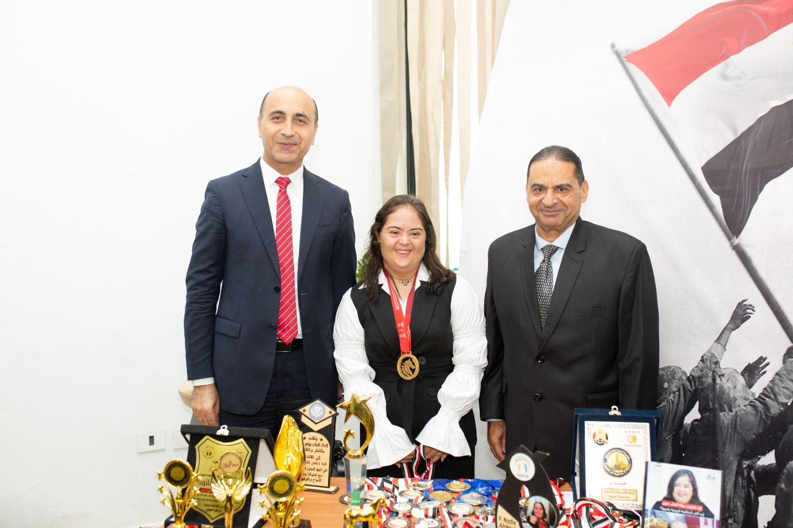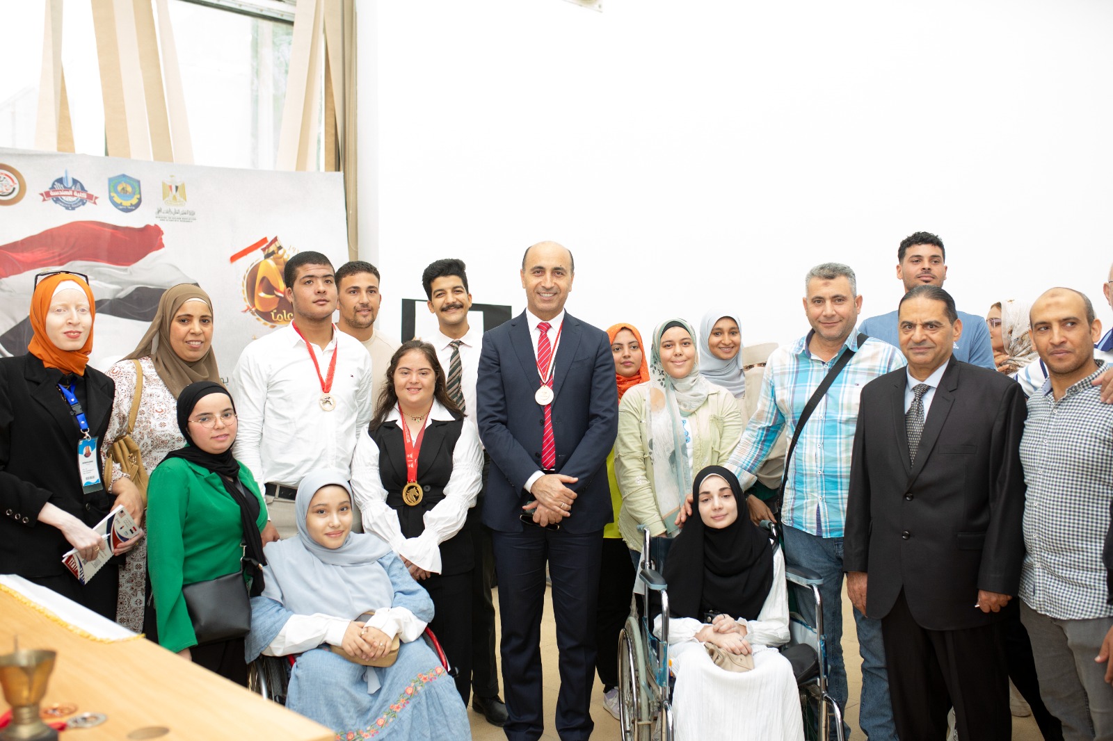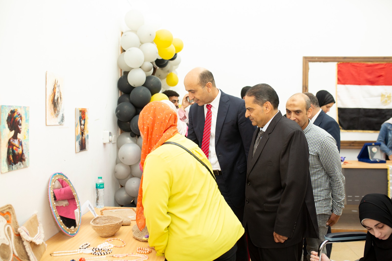 هذا وقد افتتح رئيس الجامعة معرض منتجات الطلاب ذوي الهمم، والذي ضم مشغولات يدوية ولوحات فنية، وجناح خاص بالأبطال الرياضيين من ذوي الهمم، مشيداً بكل ما قدموه ويقدمونه مؤكدا أنهم جزء لا يتجزأ من خطة الدولة في التنمية المستدامة وشركاء النجاح.