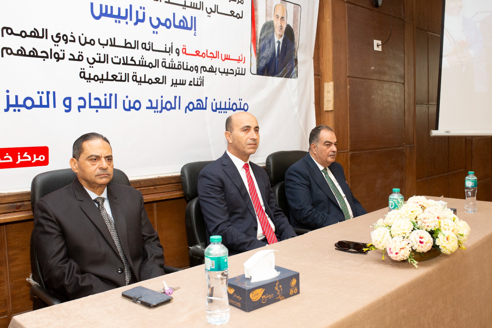 وفي ختام اللقاء؛ وحرصا على تحقيق التواصل المباشر مع الطلاب لمعرفة آرائهم واحتياجاتهم، استمع رئيس الجامعة إلى مطالب ومقترحات الطلاب، واعدا إياهم بتحقيق مطالبهم لتقديم أفضل خدمة لهم، مما لاقى استحسان الطلاب وأولياء أمورهم وأعربوا جميعاً عن سعادتهم بهذا اللقاء المثمر.