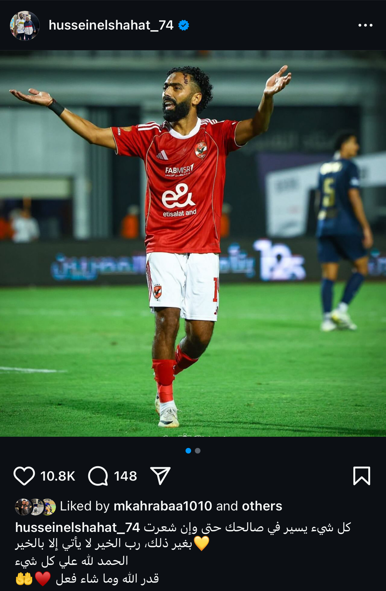 وكتب الشحات عبر حسابه الشخصي بموقع إنستجرام: "كل شيء يسير في صالحك حتى وإن شعرت بغير ذلك، رب الخير لا يأتي إلا بالخير، الحمدلله على كل شيء، قدر الله وما شاء فعل".