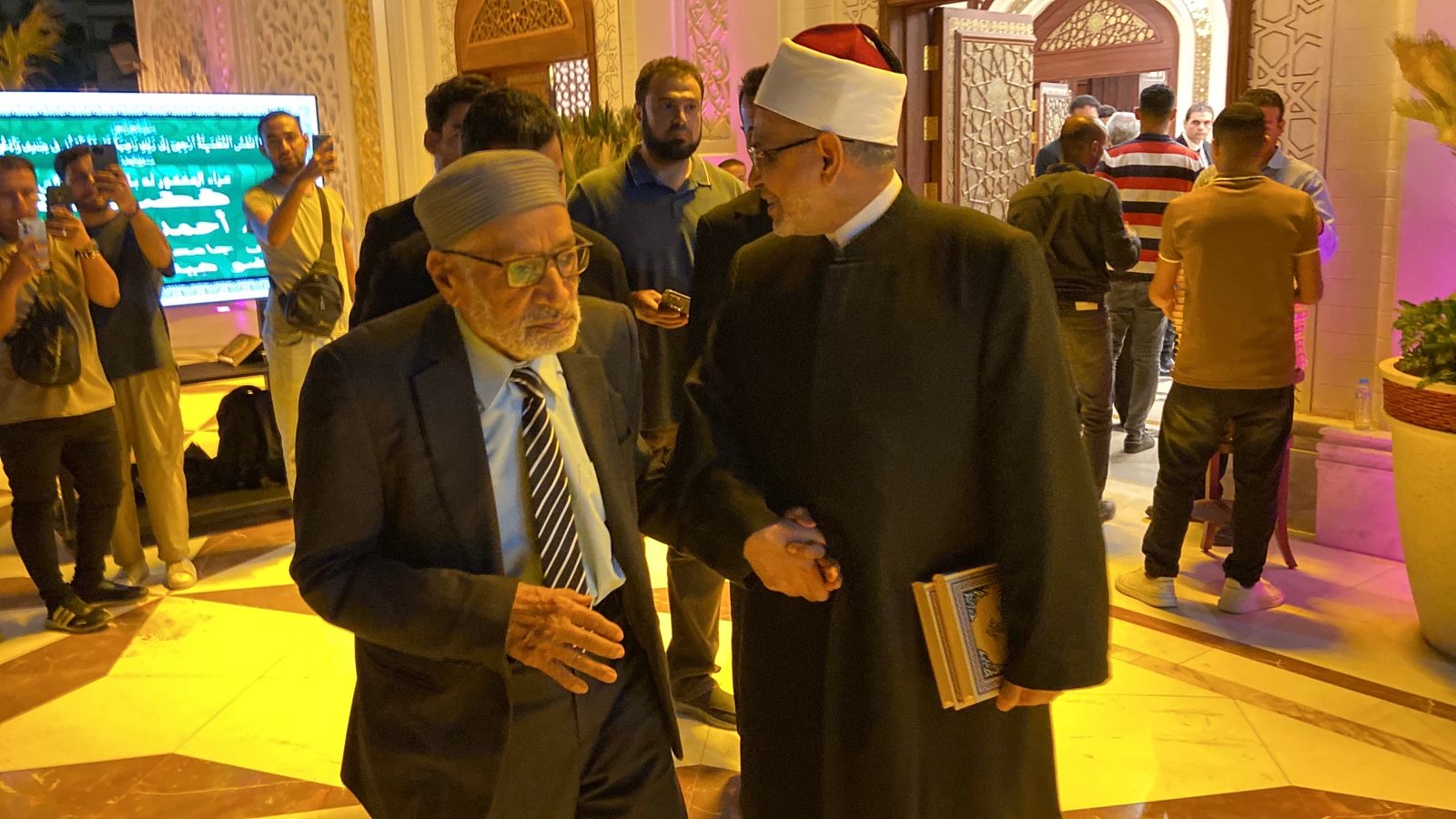 وحرص الحاضرون على تقديم واجب العزاء في وفاة العالم الجليل الذي كان أحد رموز الفكر الوسطي، وأحد أبرز العلماء الذين أفنوا عمرهم في خدمة الدين ونشر قيم الاعتدال والتسامح.