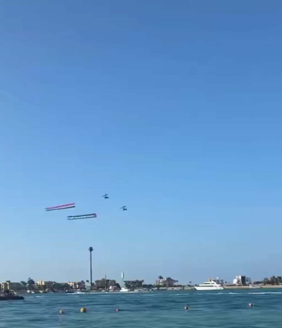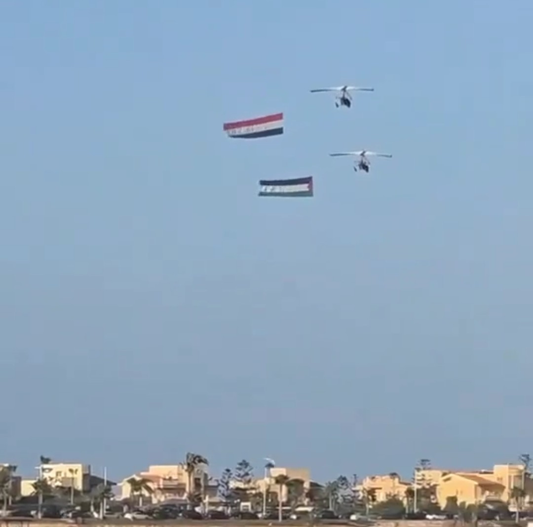 عمت الفرحة كل أبناء جنوب سيناء وشرم الشيخ وقد انطلقت اليوم طائرات تحمل اعلام مصر وفلسطين لترفرف في سماء مدينة شرم الشيخ.