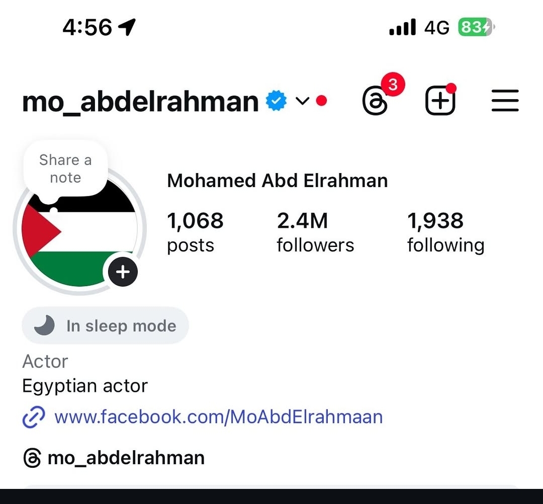 وشارك الفنان محمد عبد الرحمن توتا ، بصورة لعلم فلسطين عبر حسابه الرسمي على موقع انستجرام، وكتب معلقا: “دى صورة البروفايل عندي من سنتين من يوم ١٠ أكتوبر بظبط على ما اذكر وكنت واخد عهد مغيرهاش إلا لما ربنا يفك الأزمة ويزيح الغمة والحمدلله حصل جاى بغيرها دلوقتي مش راضية تتغير شكلها بقت معايا بقت عشرة عمر”.