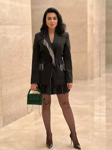 وظهرت ميرهان بإطلالة أنيقة وجريئة، حيث ارتدت فستانًا قصيرًا لفت الأنظار خلال حضورها حفل إطلاق ألبوم الفنانة مي فاروق الجديدالذي يحمل عنوان "تاريخي".