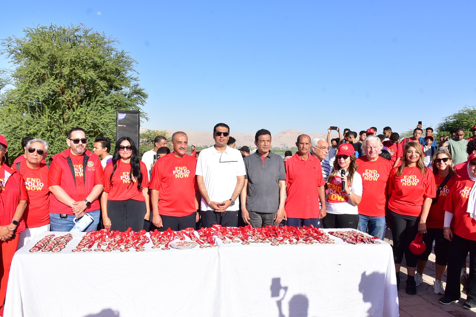 ويأتى الماراثون تحت شعار "الرياضة في خدمة الإنسانية" ، وبدأ من معبد الأقصر وحتى ساحة معابد الكرنك بطول ٣ كيلو مترات ، ويجسد الماراثون حرص روتاري مصر على إشراك جميع فئات المجتمع، ولا سيّما أهالي صعيد مصر، في الجهود العالمية نحو عالمٍ خالٍ من شلل الأطفال، فعلى الرغم من إعلان مصر خالية من المرض منذ سنوات، يواصل روتاري مصر تنظيم هذه الحملة سنويًا دعمًا لمبادرة Rotary International التي انطلقت عالميًا عام 1985، وترسيخًا لأهمية استمرار التوعية لحماية الأجيال القادمة.