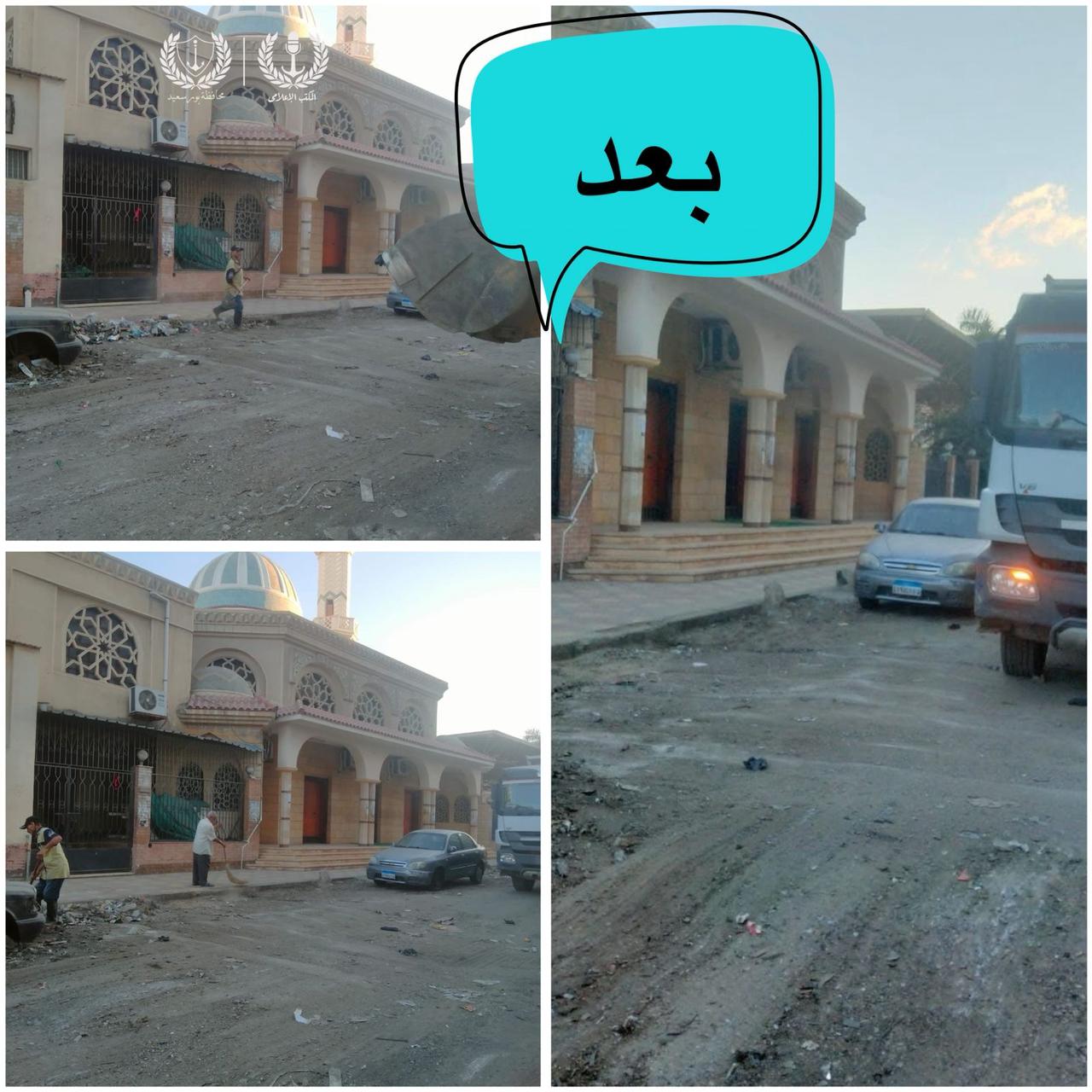 وتحركت فرق العمل التابعة للحي، حيث تم رفع جميع تراكمات القمامة والمخلفات المحيطة بالمسجد، وإزالة السيارة المتهالكة التي كانت تتسبب في حجب مدخل المسجد وتشويه المظهر العام، كما تم تطهير وتعقيم المنطقة بالكامل حفاظًا على البيئة والصحة العامة للمواطنين.