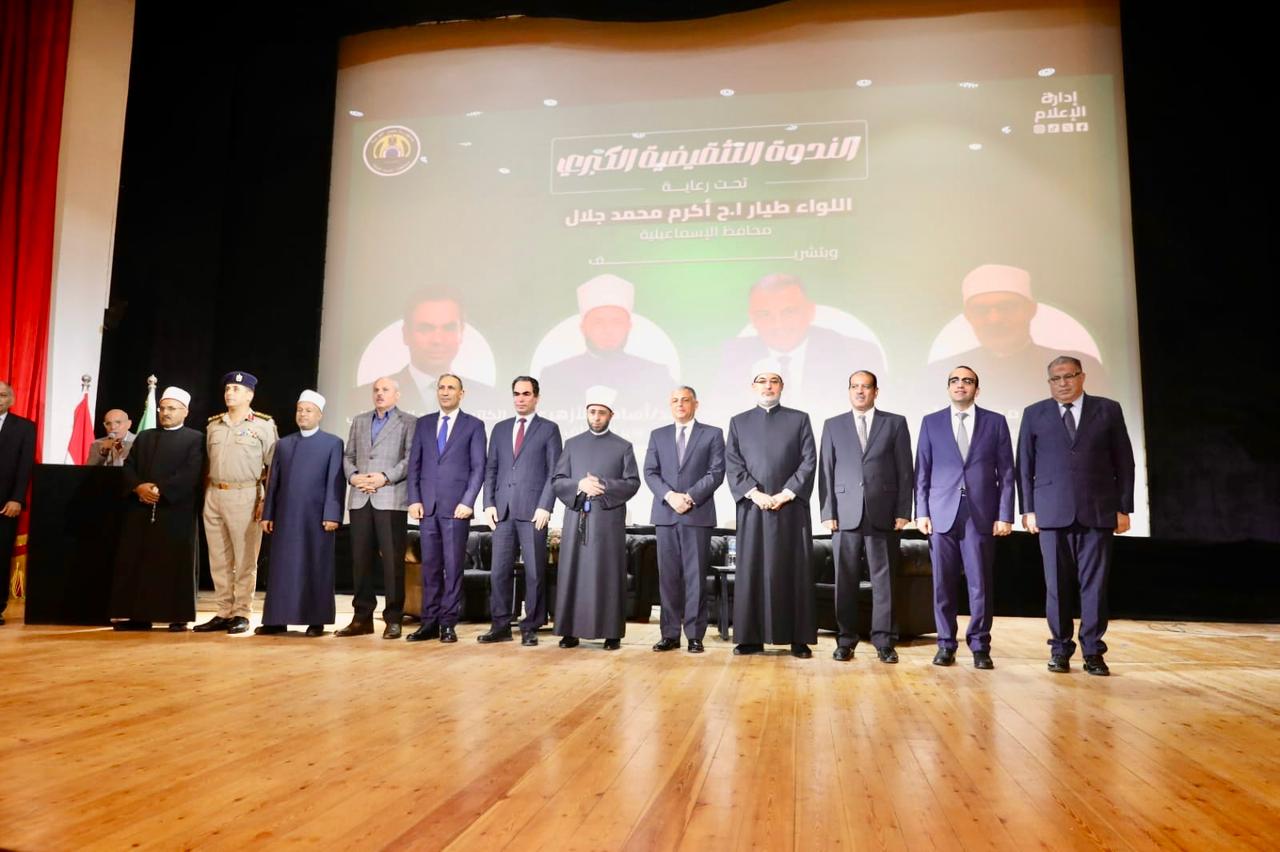 جاء ذلك خلال كلمة المفتي في الندوة التثقيفية الكبرى التي أُقيمت بقصر ثقافة الإسماعيلية، بحضور محافظ الإسماعيلية، ووزير الأوقاف، ورئيس الهيئة الوطنية للإعلام، ورئيس جامعة قناة السويس، ومدير أمن الإسماعيلية وعدد من القيادات السياسية والدينية، وذلك في إطار احتفالات محافظة الإسماعيلية بعيدها القومي.