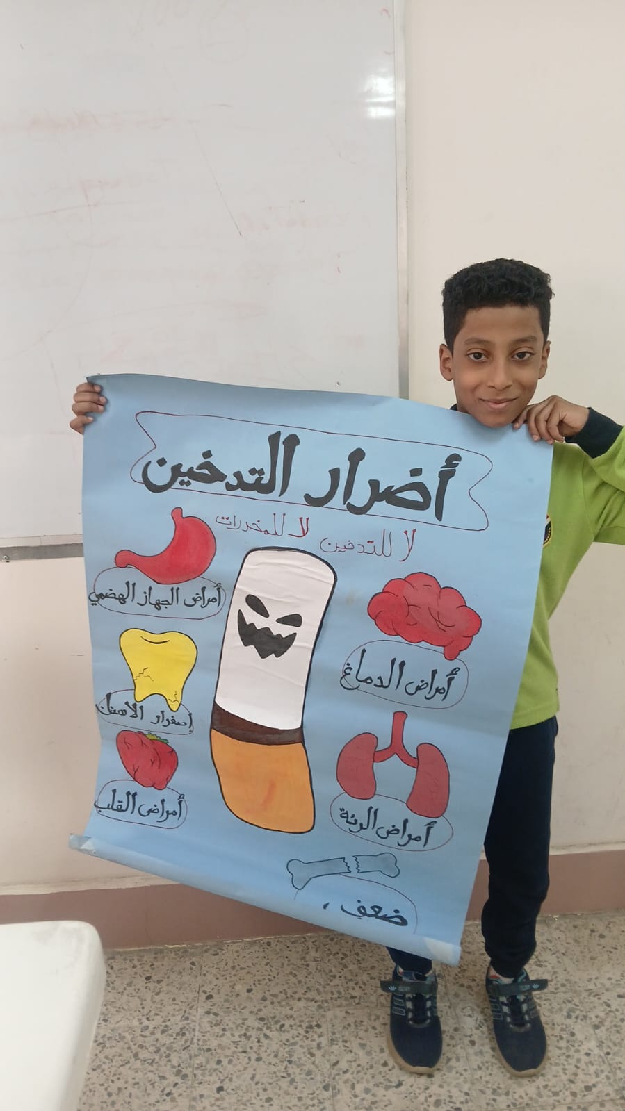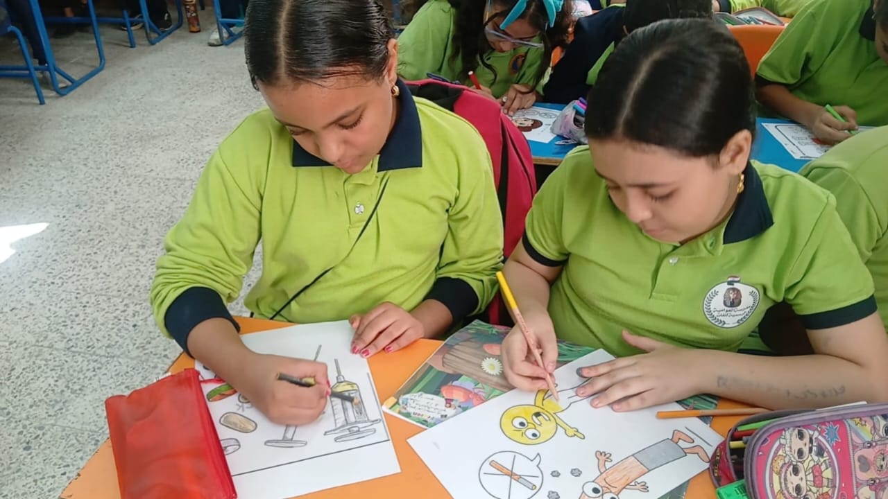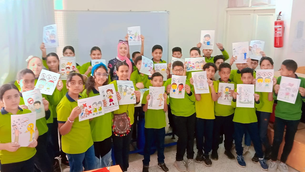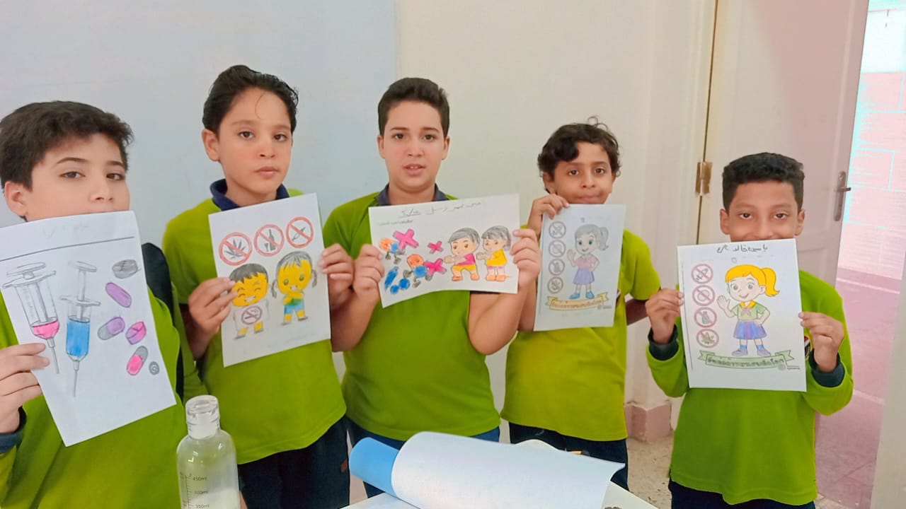 كما تضمنت الفعاليات تنفيذ ورشة عمل فنية عبّر من خلالها الطلاب عن رؤيتهم لموضوع الإدمان برسم صور وأشكال رمزية، حيث تم تشجيعهم على تلوين الرسوم الإيجابية بألوان مبهجة والسلبية بألوان قاتمة، كوسيلة لغرس قيم التمييز بين السلوكيات الصحية والضارة بطريقة بصرية وتفاعلية.
