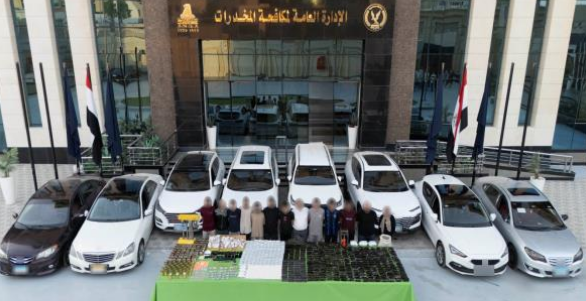 أكدت معلومات وتحريات قطاع مكافحة المخدرات والأسلحة والذخائر غير المرخصة بالتنسيق مع جهات الوزارة المعنية قيام تشكيل عصابى شديد الخطورة يضم 13 عنصر إجرامى "بينهم 7 يحملون جنسية إحدى الدول"، بجلب كميات كبيرة من المواد والأقراص المخدرة وإعادة تدوير وخلط مخدر الحشيش لمضاعفة كمياته تمهيداً لتهريبها لإحدى الدول عقب إخفائها داخل عبوات غذائية ، وإتخاذهم (مخزن – محل) كائنين بنطاق محافظتى "القاهرة ، الإسماعيلية" وكرين لإخفاء المواد المخدرة .