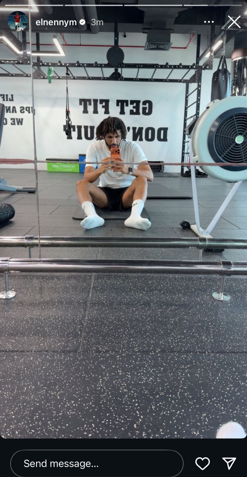 وظهر النني من الجيم اثناء أداء التمرين الصباحي من الجيم، وتفاعل معه جمهوره ومتابعيه.
