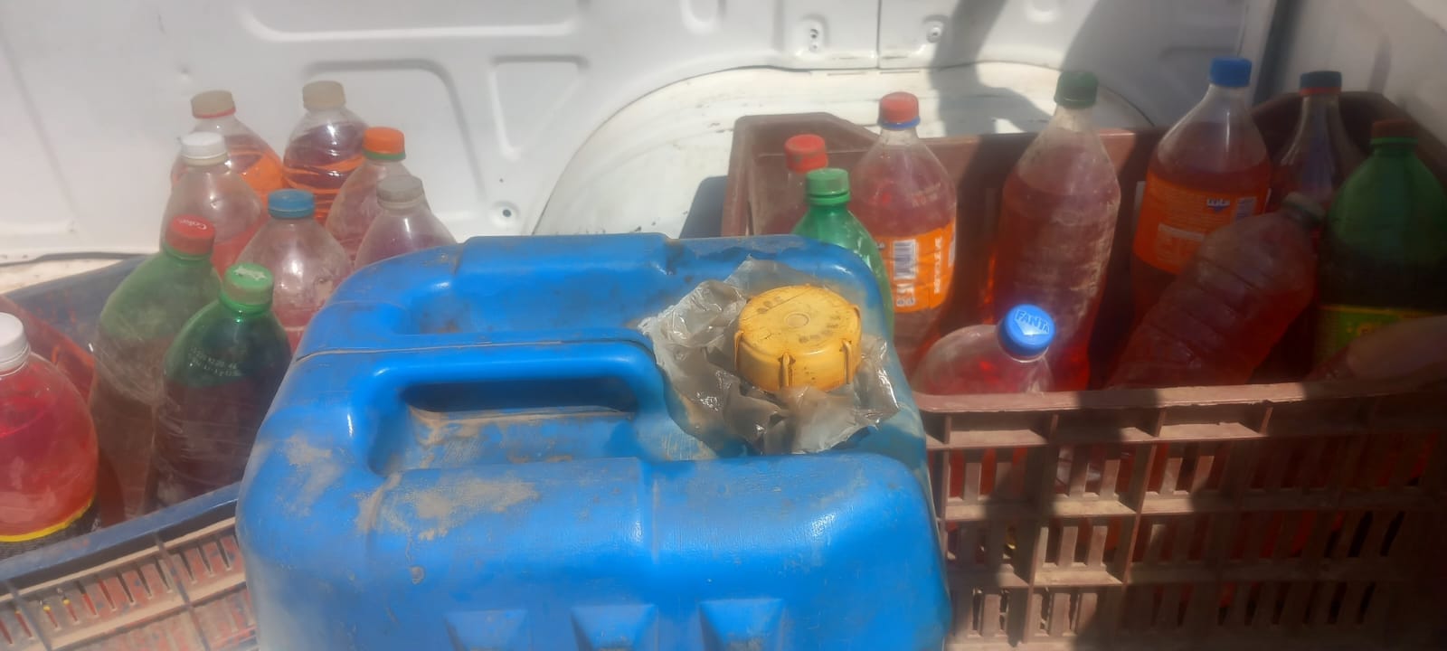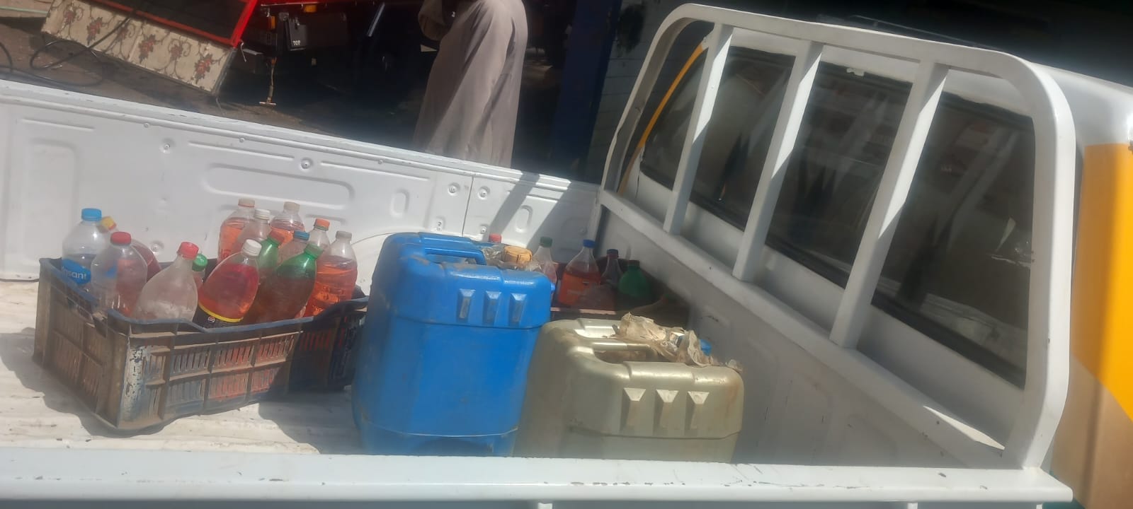 وشهدت الحملة، ضبط كمية من البنزين داخل أحد المحال التجارية (محل بقالة) قبل بيعها في السوق السوداء، وضبط زجاجات مملوئة بـ"بنزين 80".