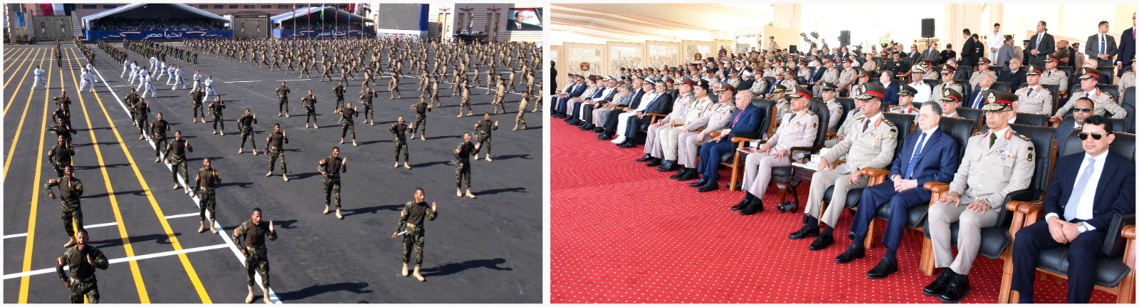 بدأت مراسم الإحتفال بعرض المهارات الرياضية وفنون الدفاع عن النفس والقتال المتلاحم والتى عكست الكفاءة البدنية والقتالية والمهارة العالية التى إكتسبها الطلبة طوال مدة دراستهم بالكليات العسكرية.