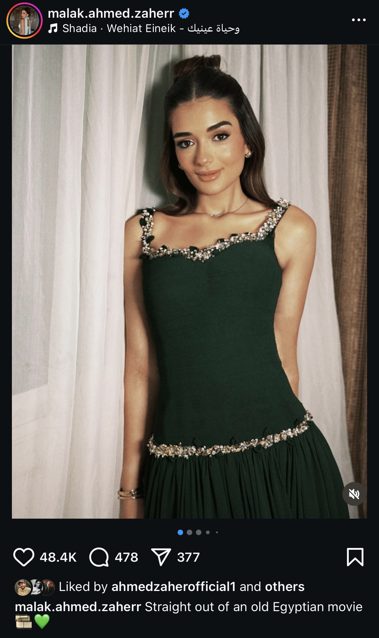 نشرت الفنانة ملك أحمد زاهر صورًا جديدة لها عبر حسابها الشخصي على موقع «إنستجرام» بإطلالة لافتة.