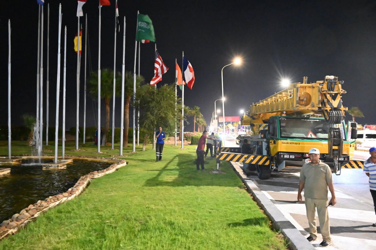 من جانبه، تابع اللواء الدكتور خالد مبارك، محافظ جنوب سيناء، الاستعدادات النهائية، في إطار جهود الدولة والأجهزة المعنية لاستضافة القمة. وتفقد المحافظ أعمال التجميل ورفع الكفاءة بطريق السلام والميادين الرئيسية، موجهاً بسرعة الانتهاء من أعمال الرصف والتشجير والإنارة الحديثة لتظهر المدينة في أبهى صورها أمام الضيوف. كما تابع مواقع العمل بمحيط قاعة المؤتمرات والطرق المحيطة بها.