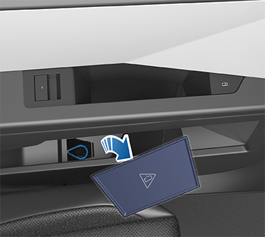 في جيب الباب الخلفي توجد لوحة بلاستيكية صغيرة تحمل رمز مثلث مع باب مفتوح.