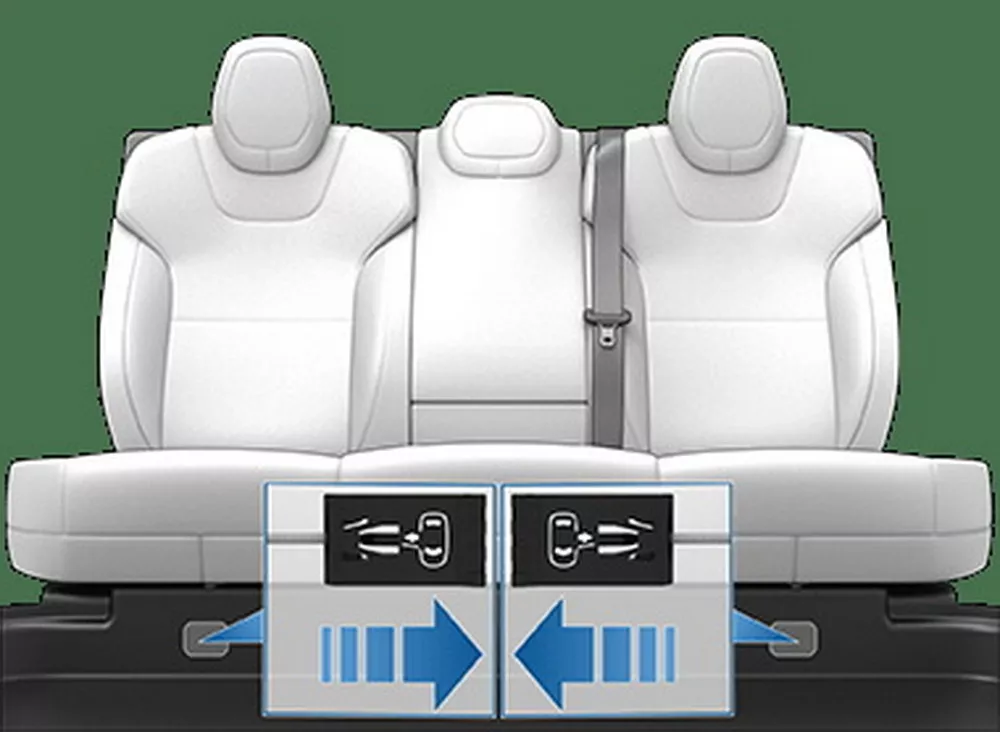 أما للتعامل مع المقاعد الخلفية في بعض نسخ موديل X فزران التحرير اليدوي يقعان خلف السجادة المواجهة لمقدمة السيارة، ويجب طي حافة السجادة ثم سحب الزر نحو منتصف السيارة.