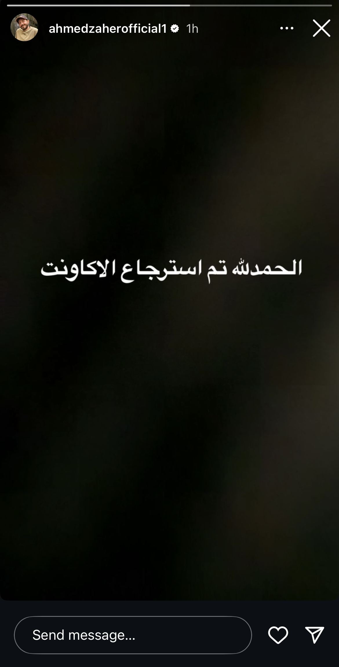 وكتب أحمد زاهر، عبر ستوري حسابه على انستجرام: “الحمد لله تم استرجاع الاكونت”.