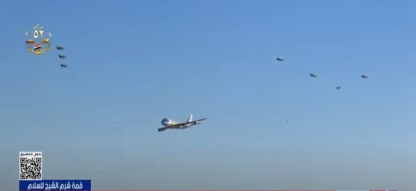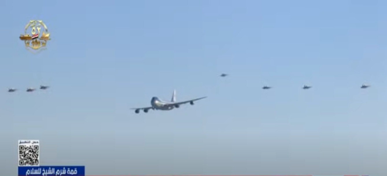 رافقت مقاتلات إف-16 المصرية طائرة الرئيس دونالد ترامب، خلال توجهه إلى مدينة شرم الشيخ، الإثنين، لحضور قمة السلام التي تستضيفها مصر بحضور عدد من قادة العالم، وذلك في إطار تعزيز الحماية الجوية للرحلة وتأكيد الأهمية الاستراتيجية للزيارة في جهود إنهاء الحرب في غزة.