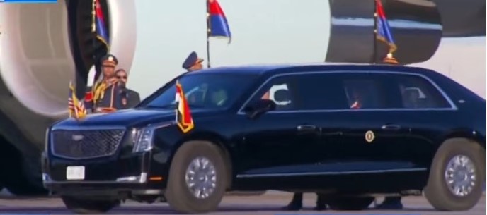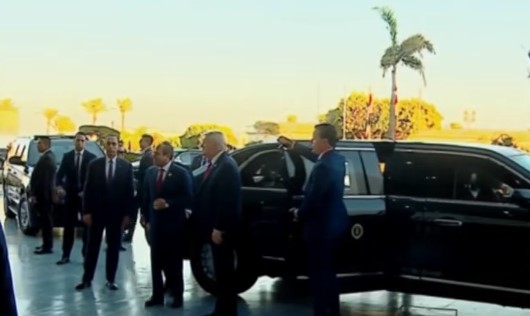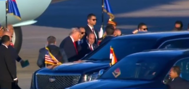 استقبل الرئيس عبد الفتاح السيسي، منذ قليل الرئيس الأمريكي دونالد ترامب في مطار شرم الشيخ فور وصوله لحضور قمة شرم الشيخ للسلام، و استقل الرئيسين سيارة "الوحش" للوصول لمكان انعقاد القمة.