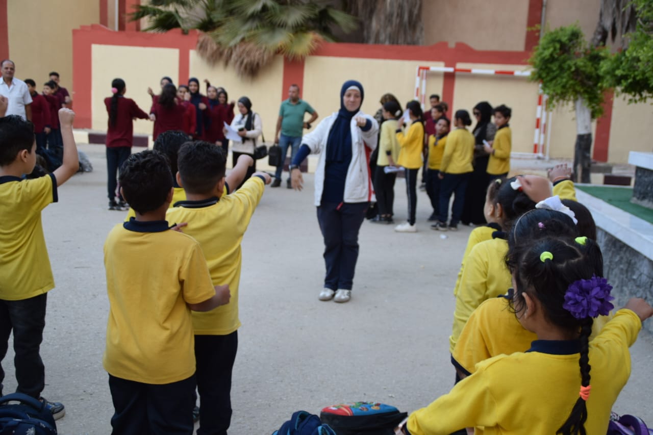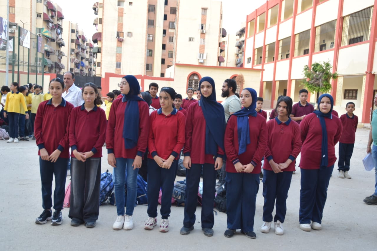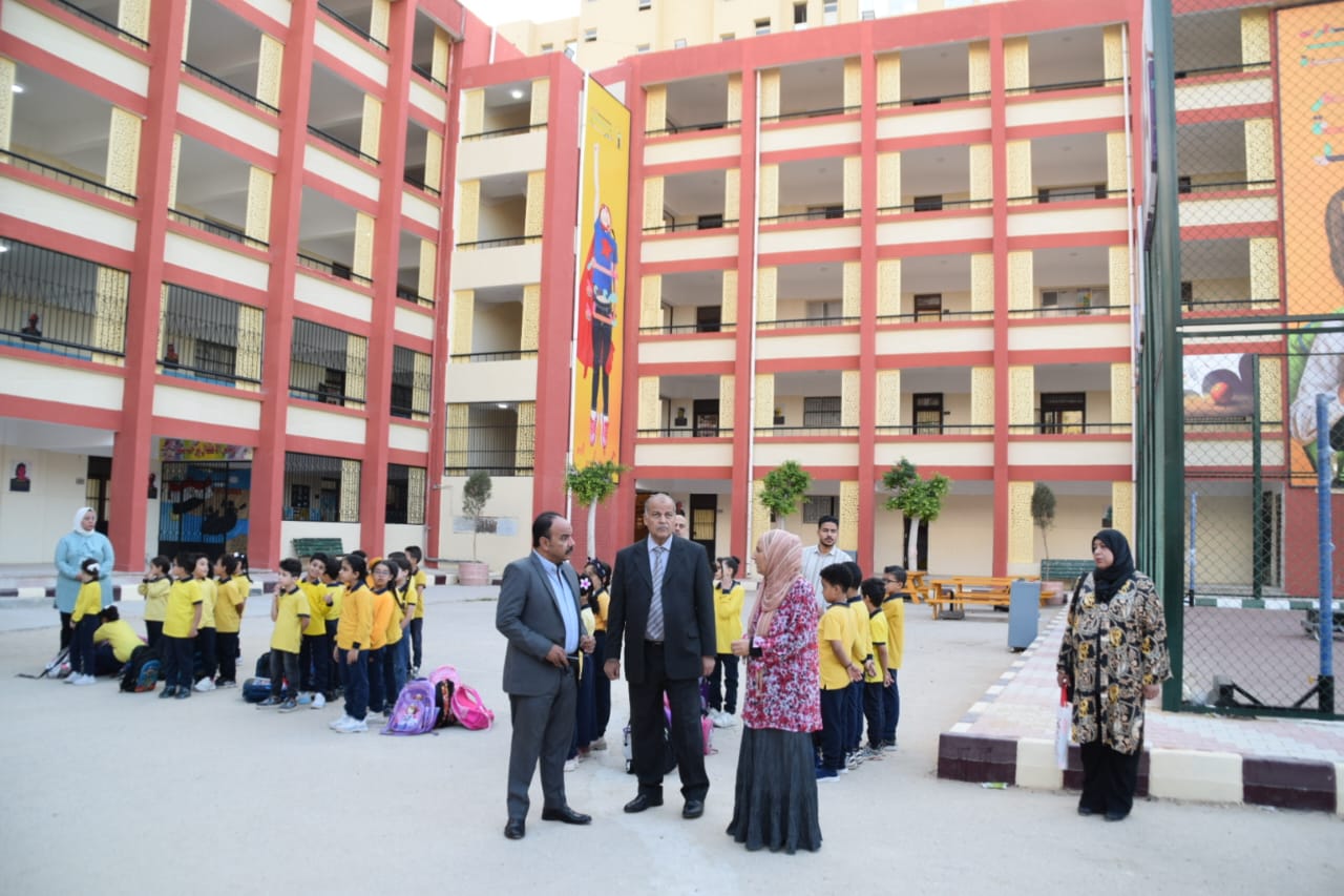 وشهد مدير المديرية فعاليات الطابور الصباحي ومراسم تحية العلم والاذاعة المدرسية بحضور الاستاذ رائد شاهين مدير المكتب الفني لمدير المديرية والأستاذة منال جبر مدير المدرسة التى تضم ١٧٠ طالب وطالبة بالمرحلة الابتدائية تضمهم ٦ فصول دراسية إلى جانب ٧٧ طالب وطالبة بالمرحلة الإعدادية موزعين على ٣ فصول دراسية.
