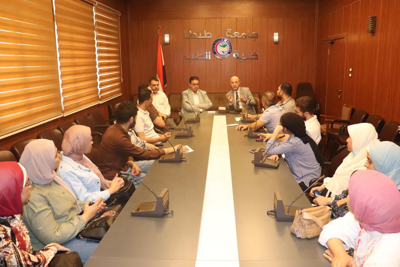 التقى الدكتور محمد حنتيره القائم بأعمال عميد كلية الطب جامعـة طنطـا ورئيس مجلس إدارة المستشفيات الجامعية الدكتور إيهاب كمال مدير عام الإدارة الاستراتيجية بالمجلس الصحى المصرى والمشرف على منظومة التطوير المهنى المستمر وإختبارات مزاولة المهنة لمناقشة سبل التعاون المشترك بين المجلس الصحى المصرى وكلية الطب جامعـة طنطـا وتجديد ترخيص مزاولة المهنة لشباب الأطباء وذلك بحضور الدكتور محمد مختار مبروك مدير وحدة ضمان الجودة والإعتماد بالمستشفيات الجامعية و الدكتورة راجية شرشر مدير إدارة التدريب بالمستشفيات الجامعية .
