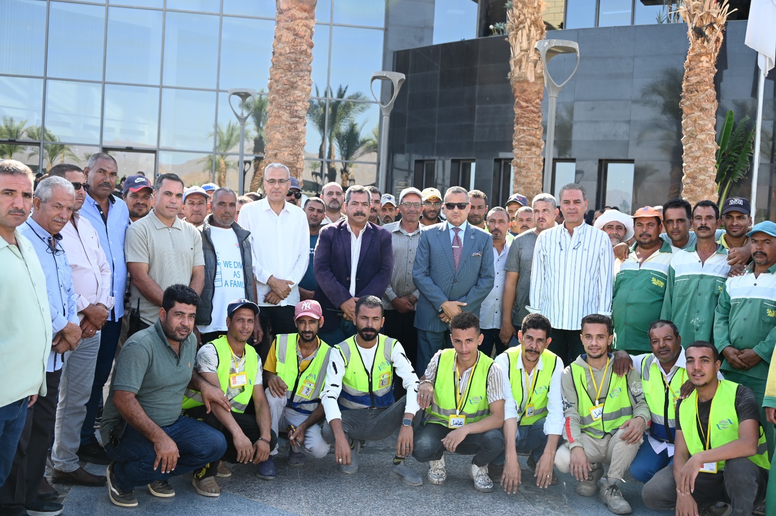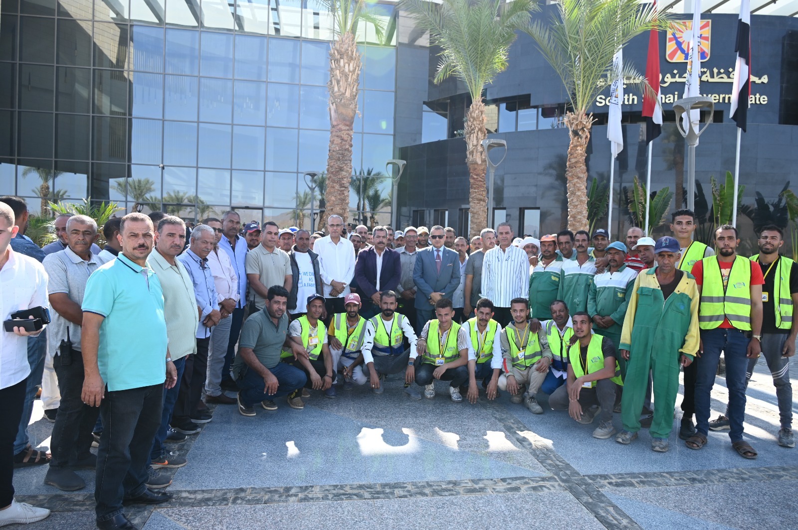 وفي كلمته للعمال، قال محافظ جنوب سيناء: "أنتم رجال فوق الظل وفوق الرأس، فأنتم أساس العمل والإنتاج، وسواعد البناء والتنمية في كل موقع على أرض جنوب سيناء".