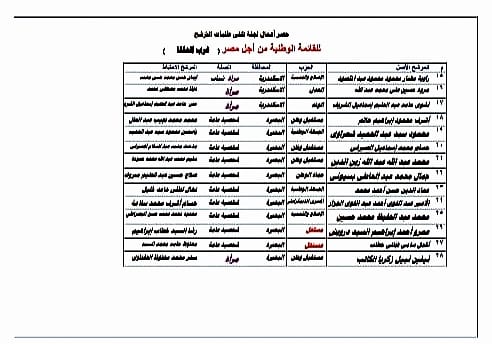 وفيما يلي ننشر أسماء المرشحين على القائمة الوطنية من أجل مصر بغرب الدلتا بانتخابات النواب .