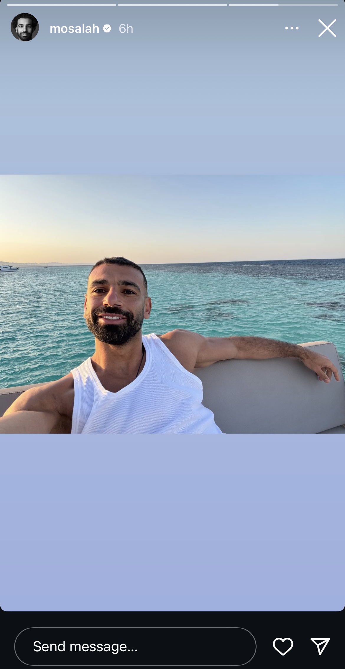 ونشر محمد صلاح، لحظات استمتاعه على يخت بالبحر، عبر حسابه الرسمي على انستجرام.