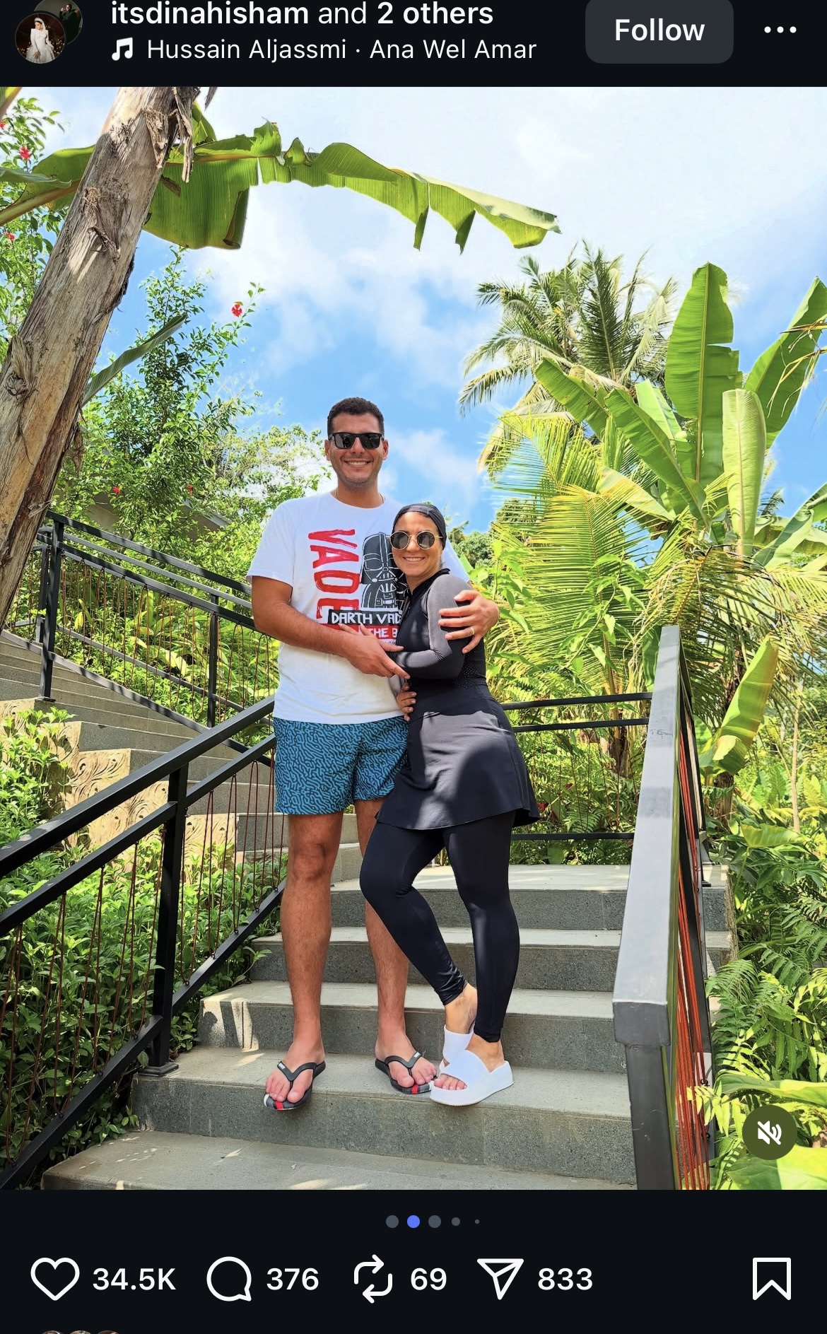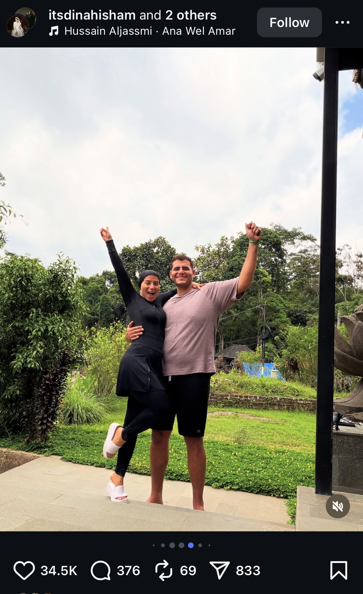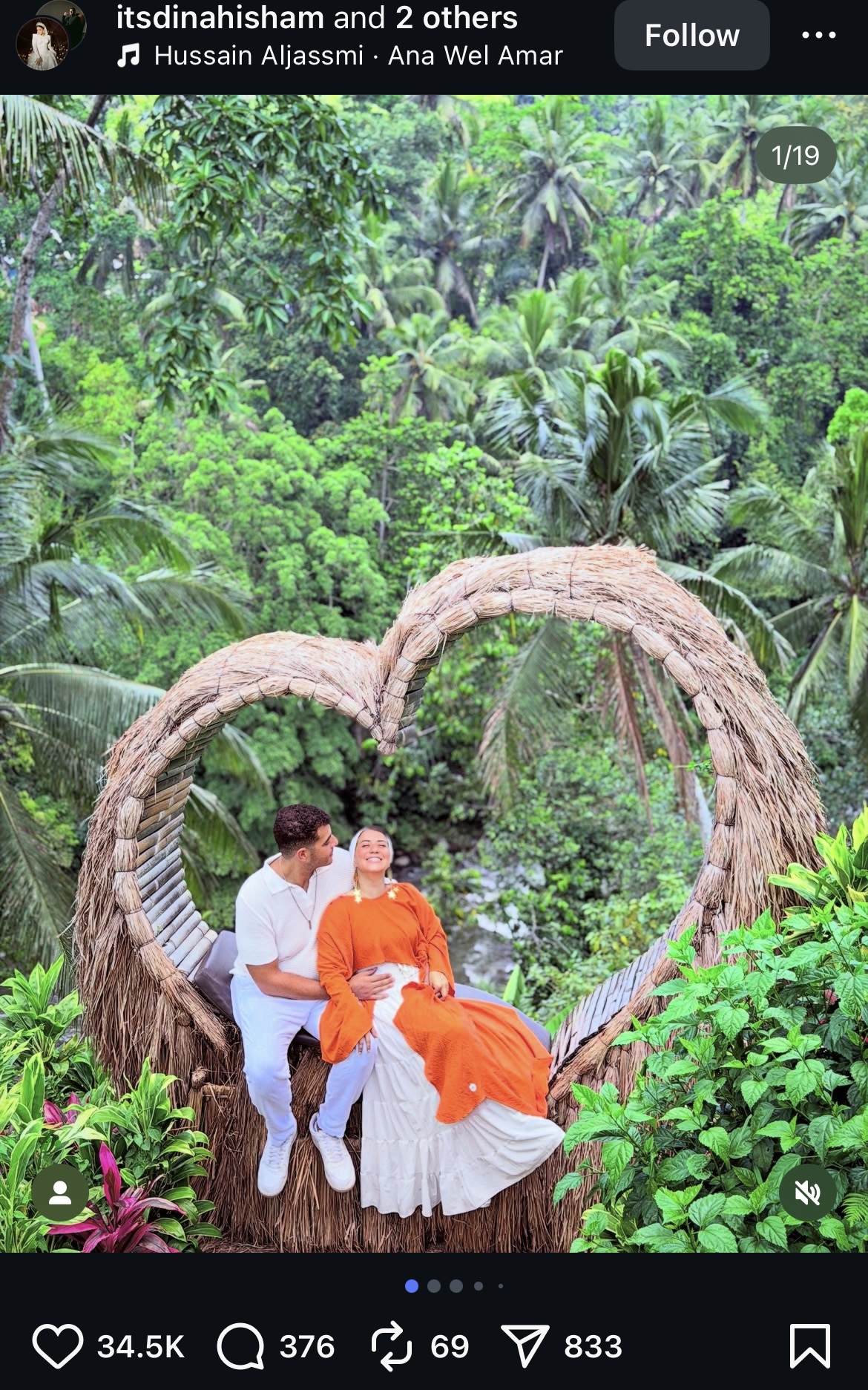 وخطفت دينا هشام الأنظار من شهر العسل، بصور مع زوجها في مناظر الطبيعة المبهجة.