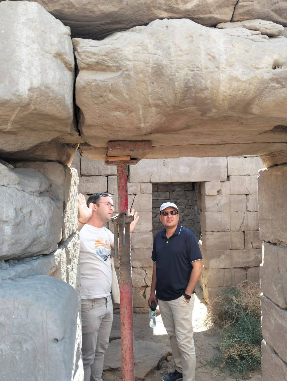 وتابع الفريق أيضًا أعمال تدعيم جدار الطوب اللبن بالمنطقة الجنوبية الشرقية للمعبد، وهي من المهام التي تتطلب دقة عالية للحفاظ على استقرار الجدران الأصلية ومنع تعرضها للتشققات أو الانهيار مع مرور الزمن.