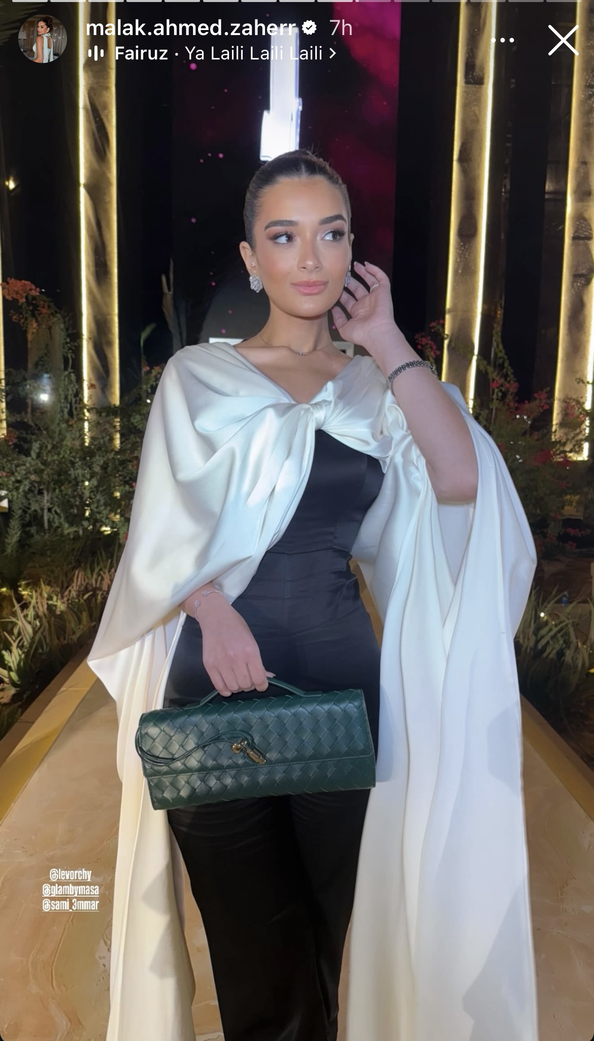 كما اختارت ملك أحمد زاهر، ربط شعرها البني الطويل بطريقة تتناسب مع أطلالتها.