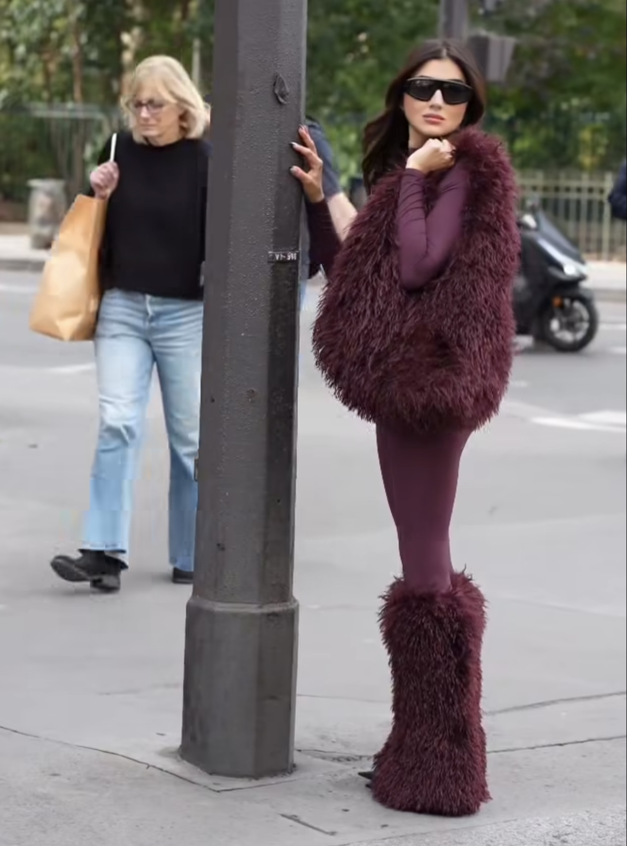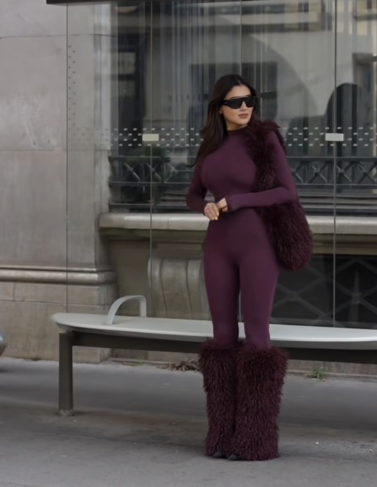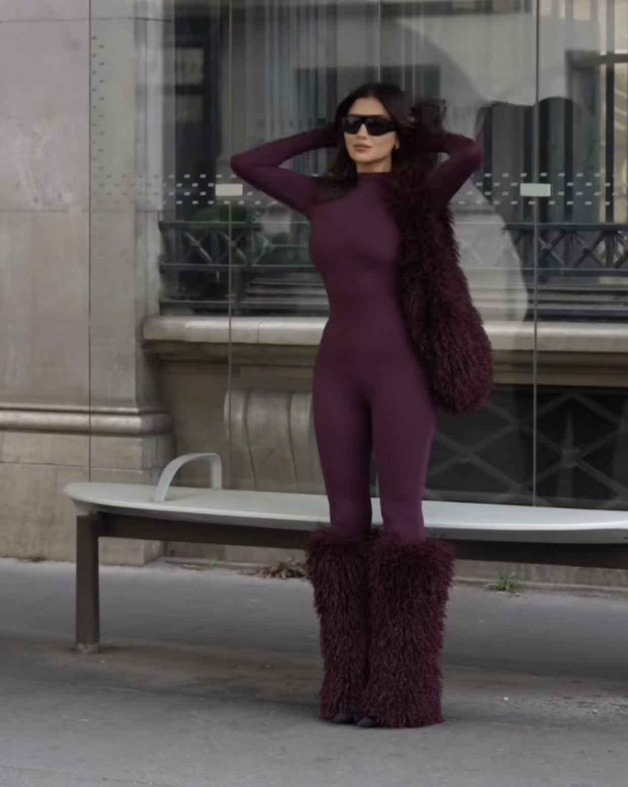ونسّقت مي الإطلالة مع إكسسوارات فرو بنفس اللون، شملت حقيبة كبيرة وأحذية طويلة مغطاة بالفرو، مما منح اللوك طابعًا شتويًا فخمًا ومختلفًا.