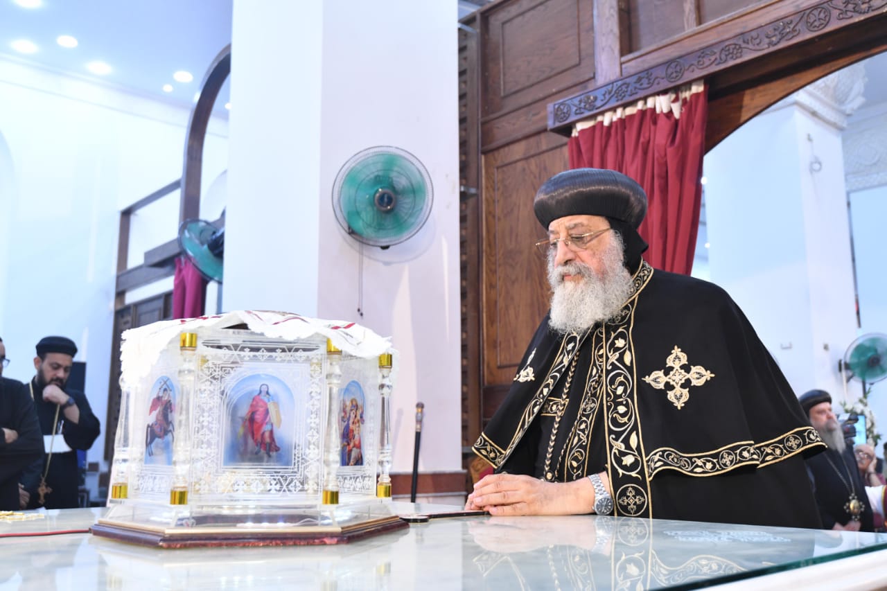 وجاء ذلك قبل بدء عظة قداسته في اجتماع الأربعاء مساء اليوم الذي عقده في كنيسة السيدة العذراء والقديس القوي الأنبا موسى بمنطقة النهضة، التابعة لقطاع كنائس مدينة السلام والحرفيين.