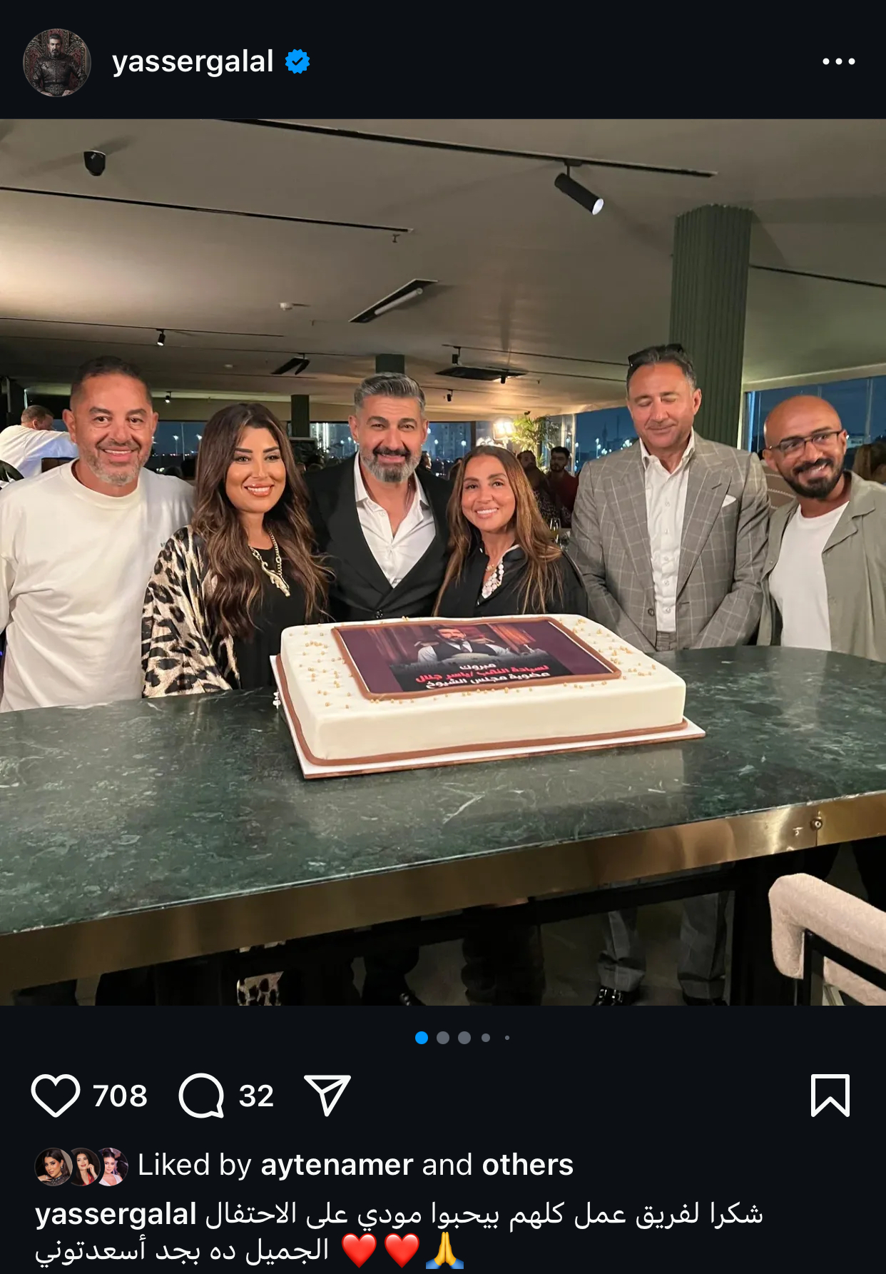 ونشر ياسر جلال صور من الاحتفال على حسابه الشخصي بموقع إنستجرام: "شكرًا لفريق عمل كلهم بيحبوا مودي، على الاحتفال الجميل دة بجد أسعدتوني".