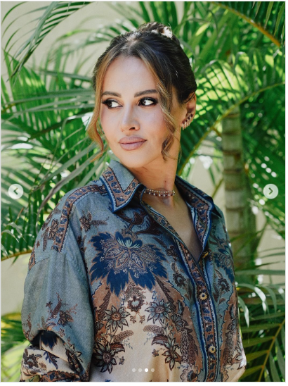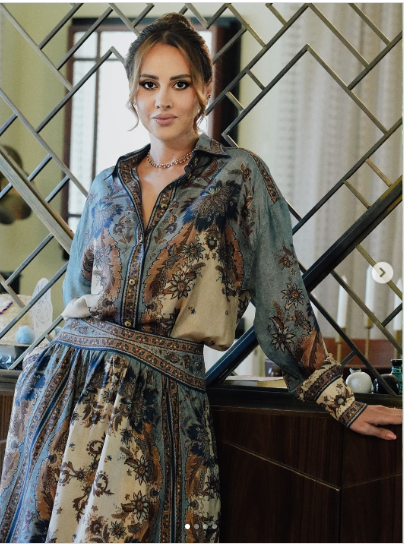 تألقت ياسمين رئيس في الصور بإطلالة جمعت بين الأحتشام والأناقة، حيث ارتدت قميص مع جيبة طويلة واتسمت إطلالتها بأنها جمعت بين درجات اللون البني والأزرق.