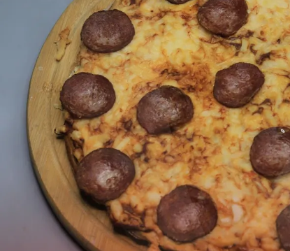 توضع البيتزا فى الفرن و تترك حتى تمام الطهى ثم تقدم.