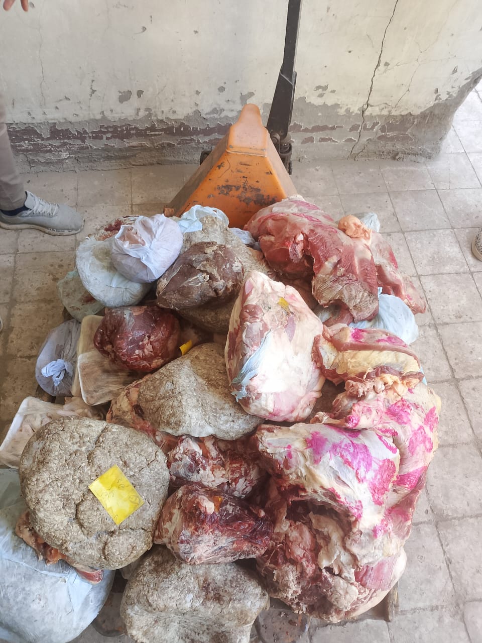 كما تمكنت الحملة في مركز المنشاة من ضبط 140 كجم متنوعة من اللحوم المفرومة والكبدة والأسماك المتعفنة، بجانب 57 كجم لحوم مذبوحة خارج المجزر بقرية الروافع دائرة مركز سوهاج.